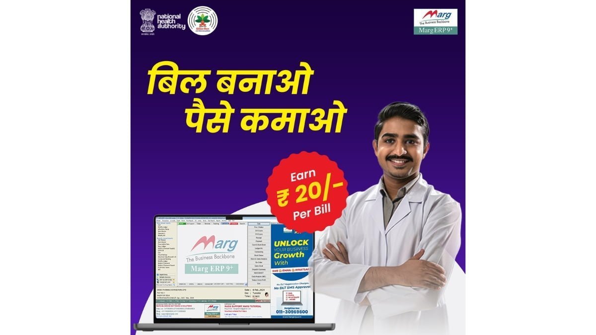Starting today, for every bill a chemist creates on Marg Erp, they will get ₹20. The potential earning between ₹ 25,000 and ₹ 50,000 every month is now within your reach!