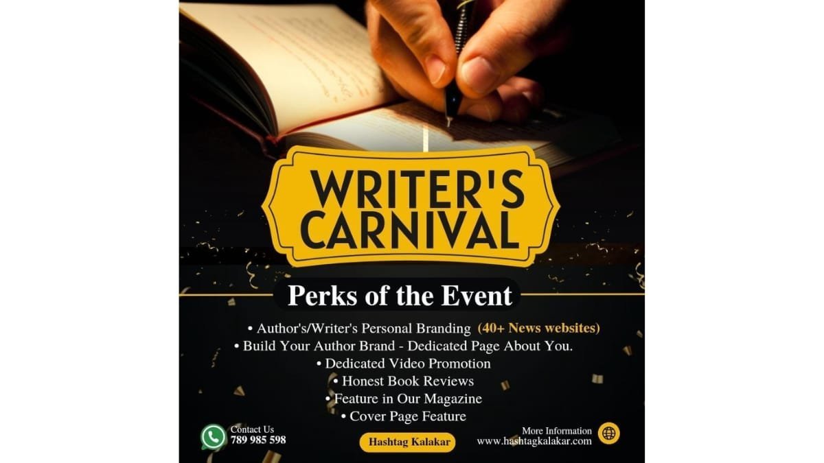 New Delhi [India], October 30: Attention all authors and literary enthusiasts! Hashtag Kalakar proudly presents the Writer’s Carnival, an exciting mega-promotion event specially crafted for writers ready to elevate their brand, share their stories, and reach a broader audience. This is more than an event—it’s a gateway to impactful exposure and meaningful connections within the writing and publishing community.